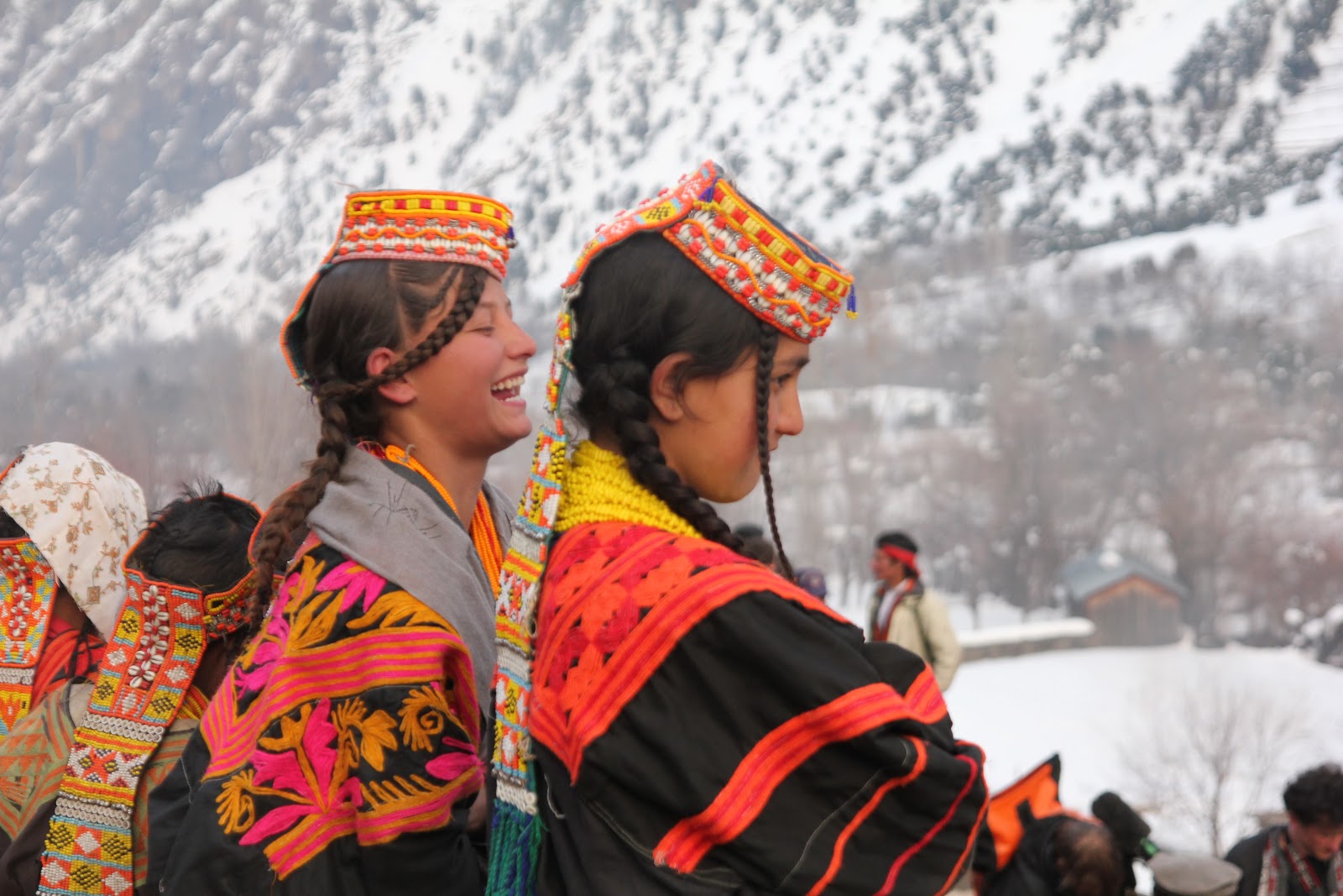 The Kalasha's unique religion, their beautiful valleys, their distinctive costume and certain practices like wine making and solstice festivals have long made them popular with scholars and more recently; tourists. Throughout Pakistan and abroad the Kalasha have come to be symbolised by the striking dresses worn by their women. These dresses start off life as a baggy black cotton shirt, which is then personalised with bright wool embroidery around the hems and collar. Interestingly these dresses are a recent innovation. Traditionally Kalasha women wore brown-black homespun woolen dresses, globalization and the introduction of a monetary economy to the region have provided women with access to cheap cotton and dyed wool from China. Ironically enough it is the availability of mass produced products which has given Kalasha women a new means to express their individuality.